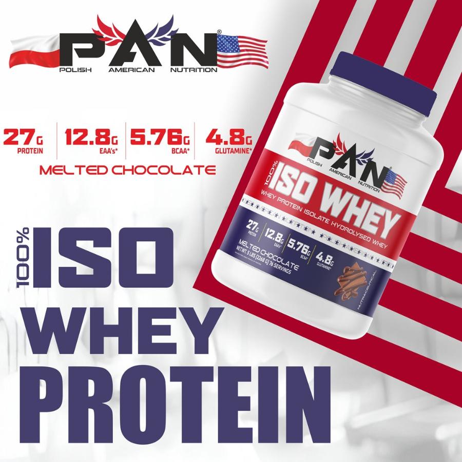 Use PAN ISO Whey Protein to increase your level of fitness. The purpose of this high-quality isolate protein powder is to promote muscle strength, growth, and recuperation. Each meal provides 26g of pure protein with little carbohydrates, making it perfect for athletes and fitness enthusiasts. It contains 2268g (5lbs) of high-quality protein. Your muscles will receive the nutrients they require at the right time thanks to its quick-absorbing composition. PAN ISO Whey Protein offers long-term value and variety for your fitness objectives, with 76 servings each pack. This protein powder is the perfect partner for any purpose, including post-workout recovery, meal replacement, and regular dietary supplementation.